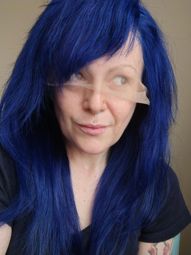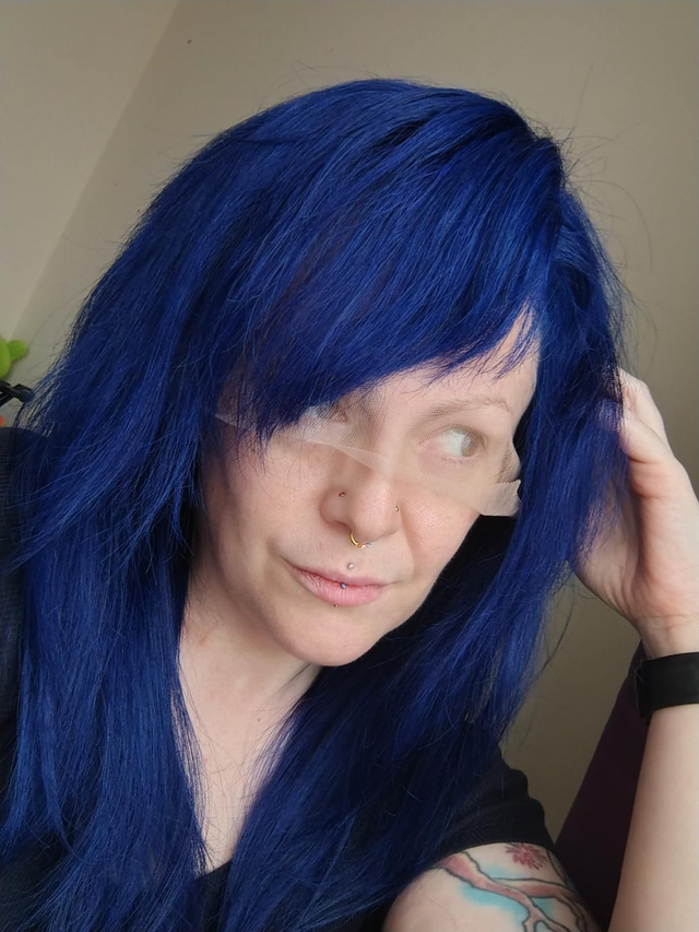 I have styled this amazingly soft midnight blue wig into a classic scene style hair cut with side bangs as a great budget scene wig.